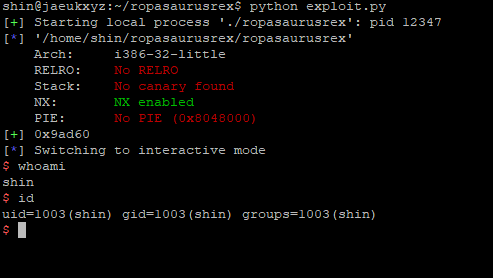 어쨋든 학교를 쉬는 김에 64비트 ROP를 클리어 해보기 위해! 다시 한번 32비트 ROP인 ropasaurusrex를 꺼냈답니다!