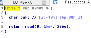 read로 256만큼의 입력을 받습니다. 아마 여기서 버퍼오버플로우 취약점이 발생하지 않을까라고 짐작이 갑니다.