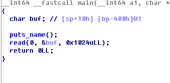 보니 read가 0x1024만큼 받는데, char의 버퍼 수는 0x400 딱봐도 BOF 취약점이 보입니다.