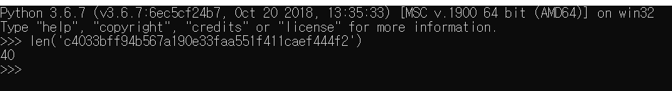 이상한 문자열이 나옵니다. 해쉬 같은데 자리수를 조사해보겠습니다.