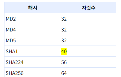 40자리라고 하네요? 40자리 해쉬가 무엇이 있을까요?