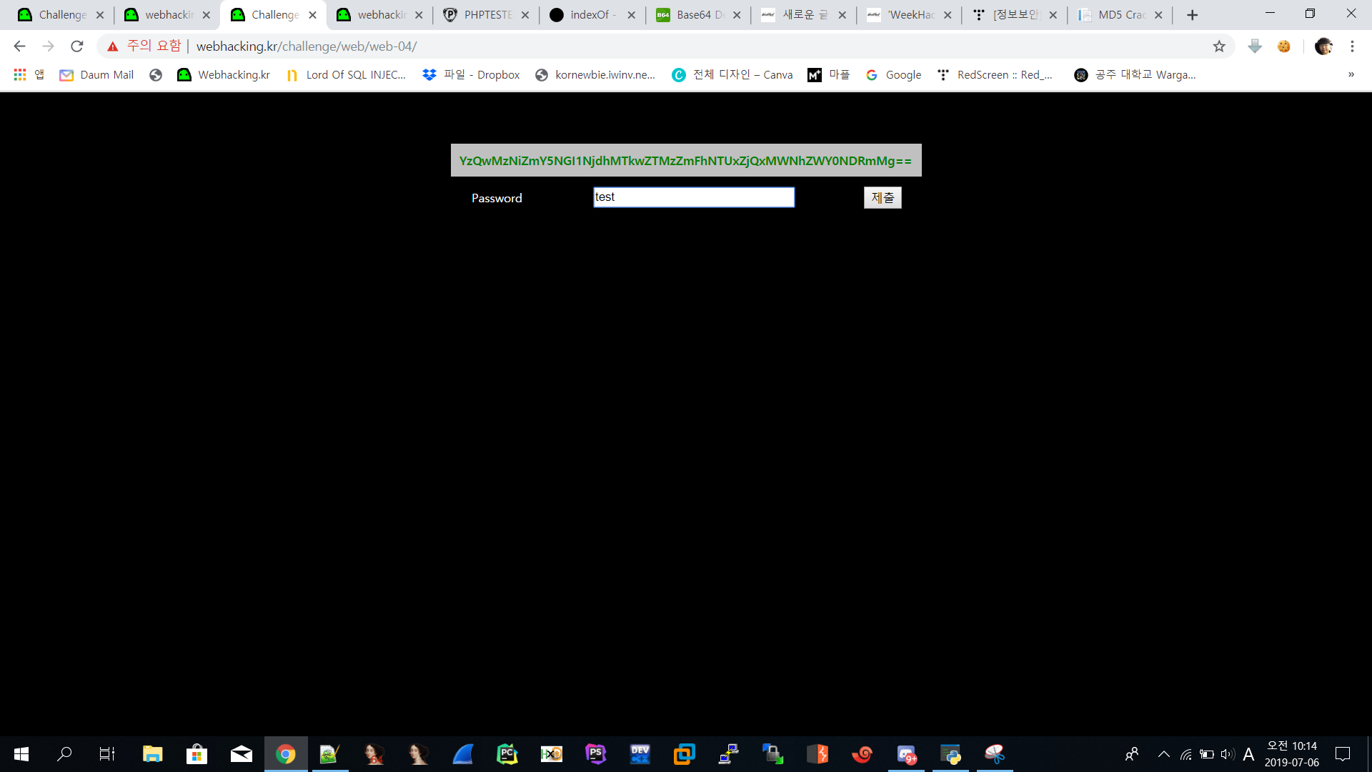 webhacking.kr 4번 base64 문제WeekHack/WebHacking 2019. 7. 6. 10:15반응형SMALL