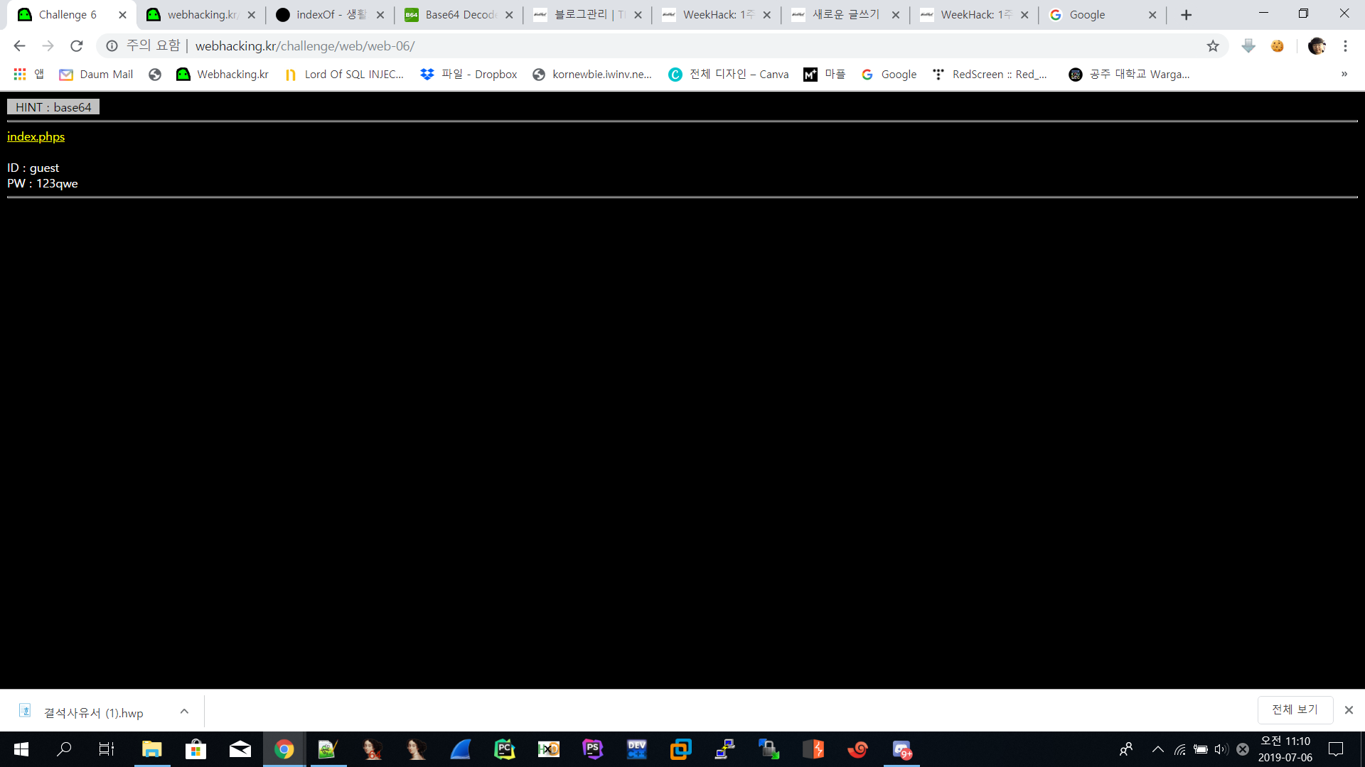 webhacking.kr 6번 base64와 replace를 이용한 admin 문제WeekHack/WebHacking 2019. 7. 6. 11:17반응형SMALL
