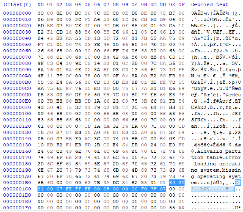 그 후 MBR 파티션 테이블에서 부팅 가능한 파티션을 찾습니다. - VBR