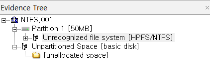 FTK Imager로 열어본 사진 FTK Imager로 열어보아도 파일시스템이 깨져있는지 제대로 안에 들어있는 파일을 인식하지 못합니다. 그럼 다시 FTK Imager를 뒤로 하고, Hxd로 해당 파일을 열어보도록 하겠습니다.