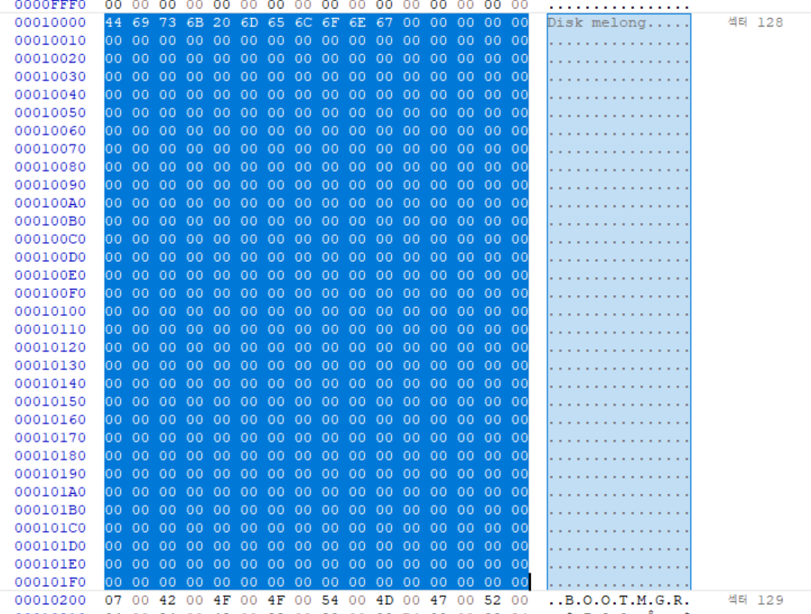 해당 데이터를 복사하여 128 섹터에 붙여 넣어 주었습니다.