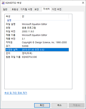 EQNEDT32.EXE는 구버전 Microsoft Offie가 사용하던 Microsoft Equation 3.0 Object의 호환을 위해 Microsoft가 Office에 남겨놓은 기능으로, 현재 수식편집기와 동일한 기능을 하고 있습니다.
