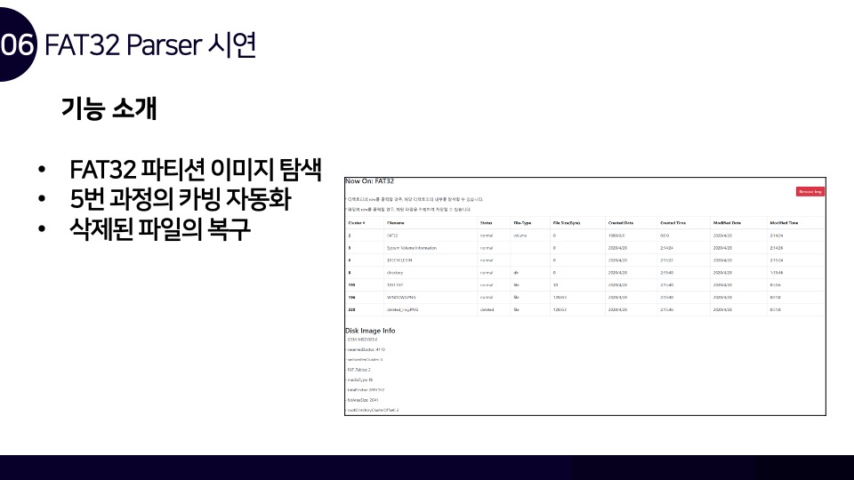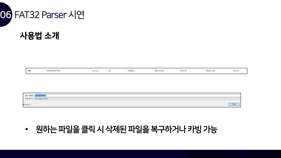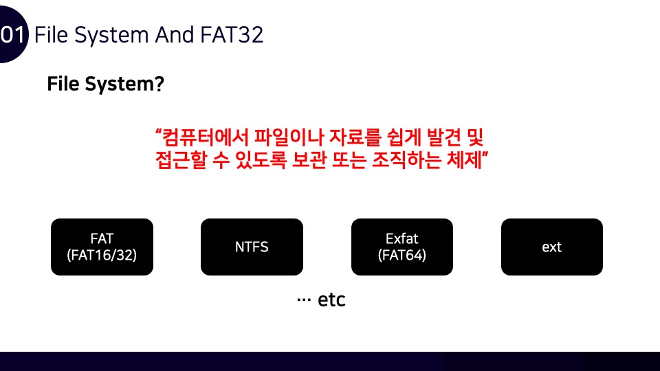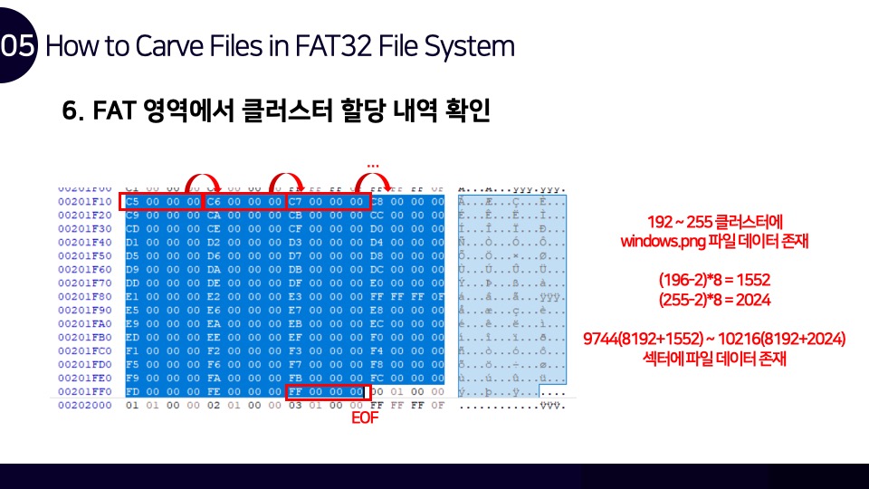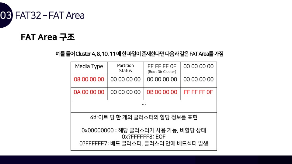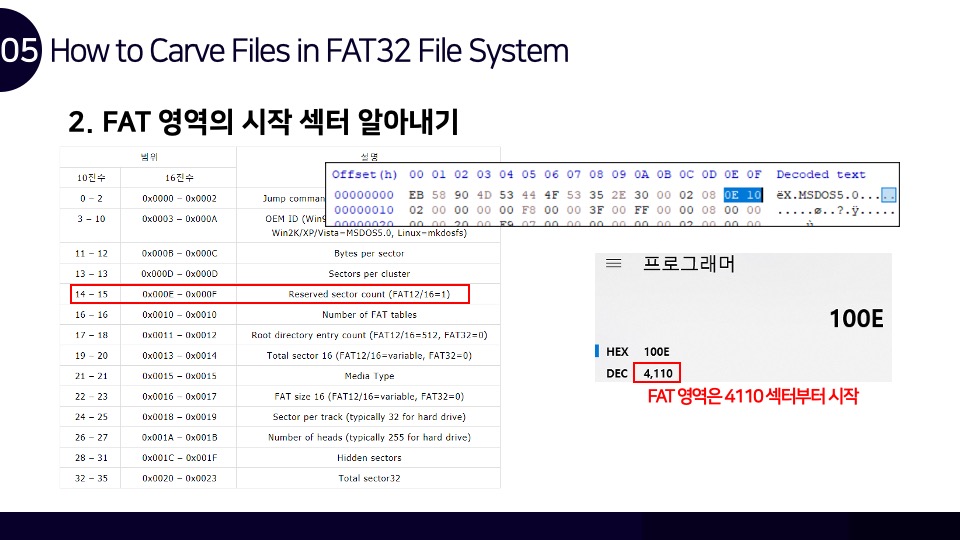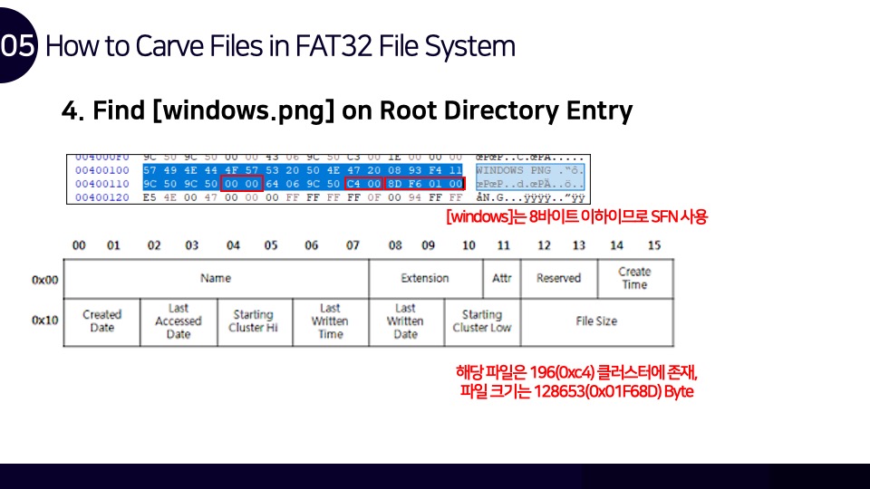 안녕하세요. Luke입니다. FAT32 파일시스템 구조와 카빙에 관하여 Newsecu에서 발표했던 발표자료를 블로그에 함께 공유합니다. 해당 발표자료를 통해 FAT32 파일시스템이 어떻게 동작하며, 어떤 방식으로 파일을 저장하는지를 확인할 수 있으며 이러한 원리를 통해 어떻게 파일 카빙(복구)이 이루어지는지를 확인할 수 있습니다. BoB 디지털 포렌식 트랙을 준비하며 파일시스템 공부를 했었을 때 만들었던 자료인데 오랫동안 공개하는 것을 잊고 있었네요. 추가적으로 앞으로의 간단한 계획을 말씀드라자면 디지털 포렌식 파트의 NTFS 시리즈도 조만간 마무리를 할 계획을 가지고 있으며, 시스템 해킹 분야의 글인 ARM 시리즈는 오랜 시간을 두고 글을 작성할 계획입니다.